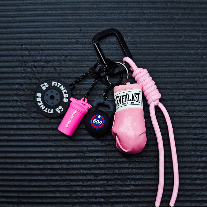 UNIQUE SPORTS STYLE COLLECTION: Own a complete set of miniature gym gear. This unique keychain features a boxing glove, dumbbell, weight plate, and water bottle, letting you carry your passion for fitness everywhere in a fun, stylish way.