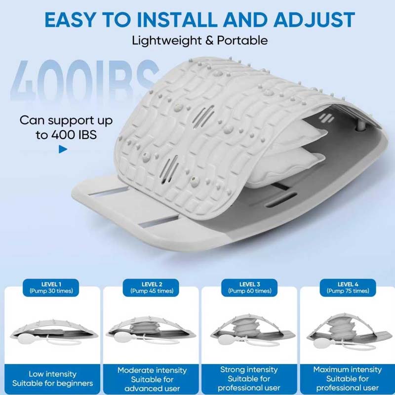 ADJUSTABLE AIRBAG SUPPORT - The inflatable airbag provides dynamic control over the stretch intensity. It ensures a perfect fit for your lower back curve, delivering targeted support and effective relief from chronic discomfort and muscle tension.
