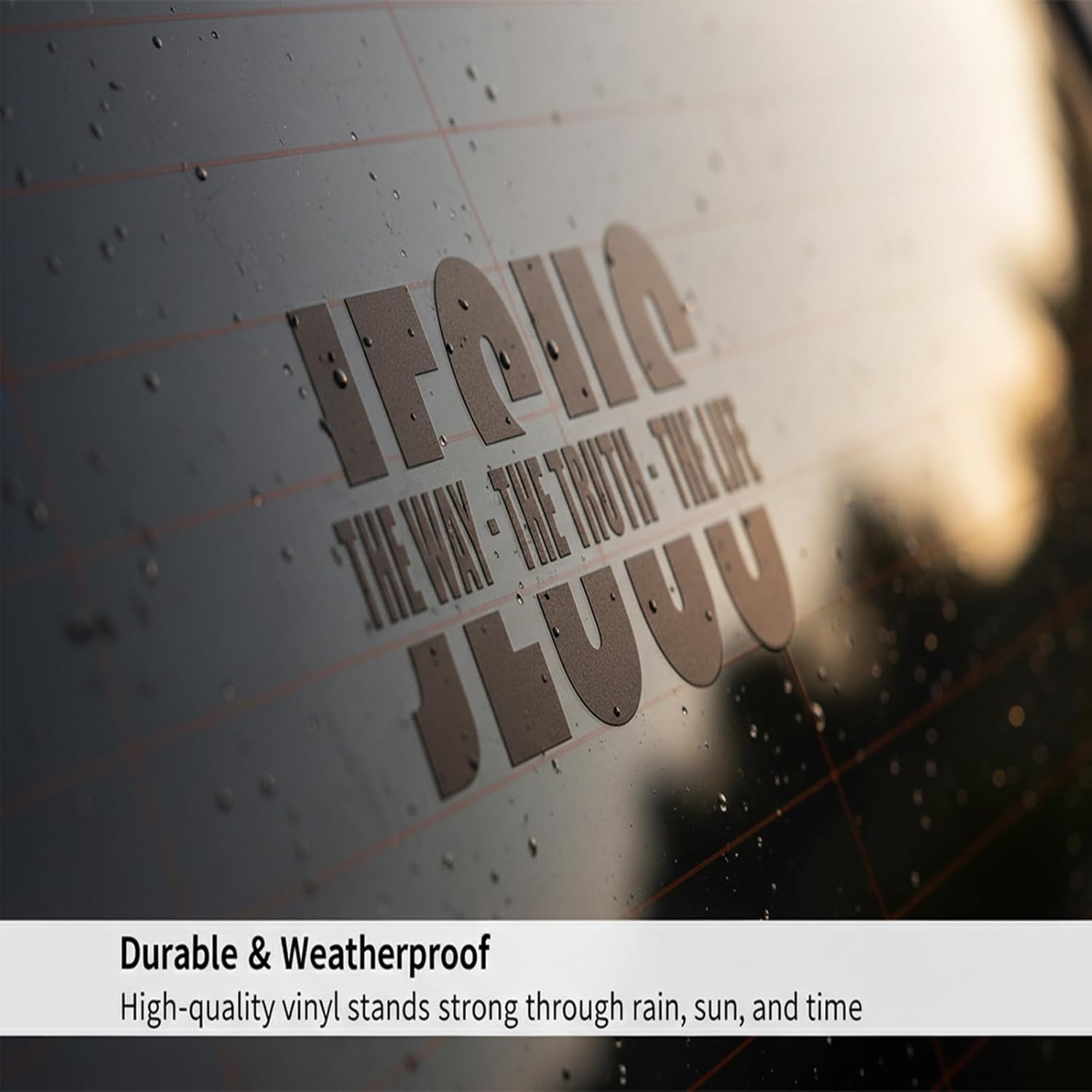Strong adhesive, fade-resistant UV ink, glossy topcoat, and protective lamination — this John 14:6 decal resists sunlight, rain, and years of outdoor use.
