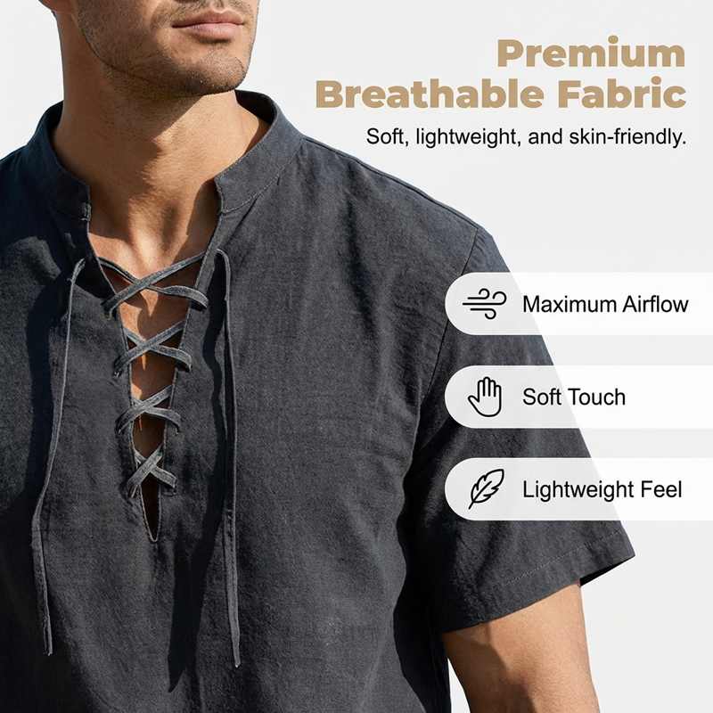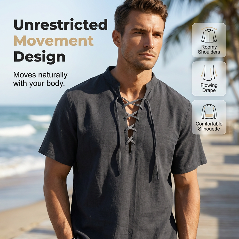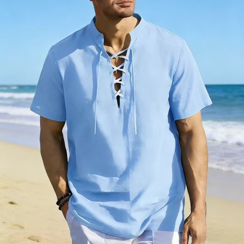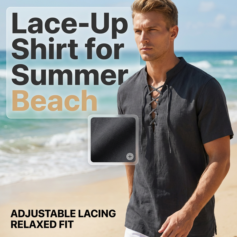 LACE-UP SHIRT FOR SUMMER BEACH - Upgrade your summer wardrobe with this premium casual lace-up shirt. Designed for ultimate comfort and effortless beach-ready style, making it your go-to vacation essential.
