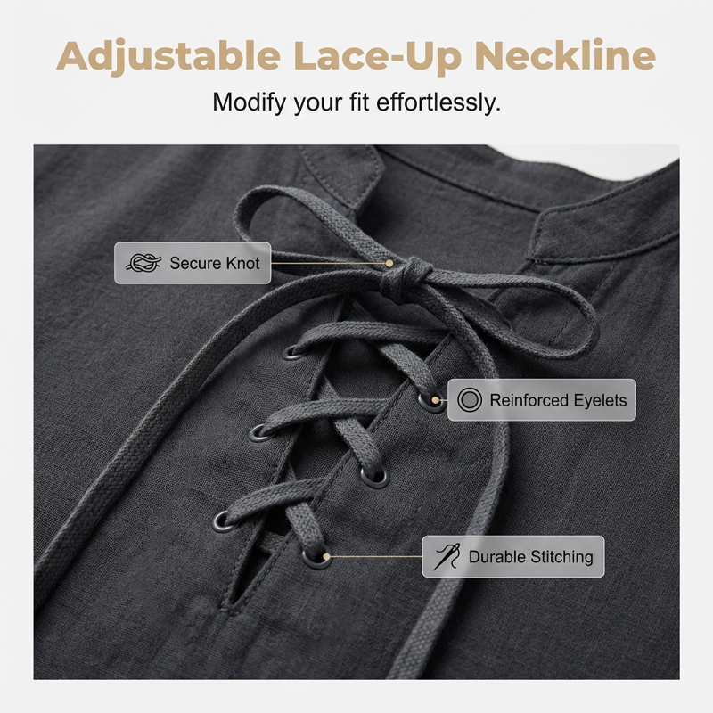 ADJUSTABLE LACE-UP NECKLINE - The classic V-neck design features an adjustable lace-up closure, allowing you to easily modify the fit and style to suit any casual occasion perfectly.